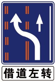 (2)標(biāo)志設(shè)置:借道入口端上游交叉口出口處合適位置,應(yīng)設(shè)置“對(duì)向借道左轉(zhuǎn)”預(yù)告標(biāo)志,版面參考圖 a),并配合可借道的控制時(shí)段輔助說明。借道出口段上游合適位置應(yīng)設(shè)置“注意潮汐車道”警告標(biāo)志。指示標(biāo)志設(shè)置:借道入口端應(yīng)設(shè)置“對(duì)向借道左轉(zhuǎn)”說明標(biāo)志,版面參考圖 b),若有條件可采用LED主動(dòng)發(fā)光標(biāo)志或內(nèi)部照明標(biāo)志(全透面板型)。