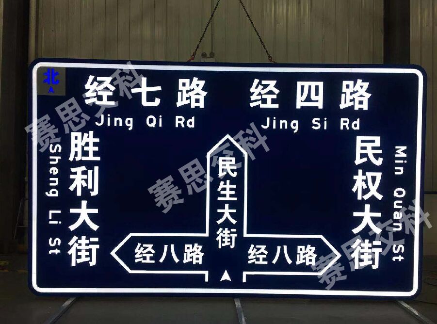 近日,濟南民生大街新添一批“半透式主動發(fā)光指路標志”,由南京賽思交通信息科技有限公司研制、生產。該標志采用主動發(fā)光工藝,不需要依賴外部光源照射,標志體內置光源投射標志面,形成筆畫飽滿、對比度高的標志發(fā)光信息,將指路標志的交通語言信息在全天候展示得淋漓盡致,為整個民生大街添色不少,用主動發(fā)光來關乎“民生”出行更加安全。