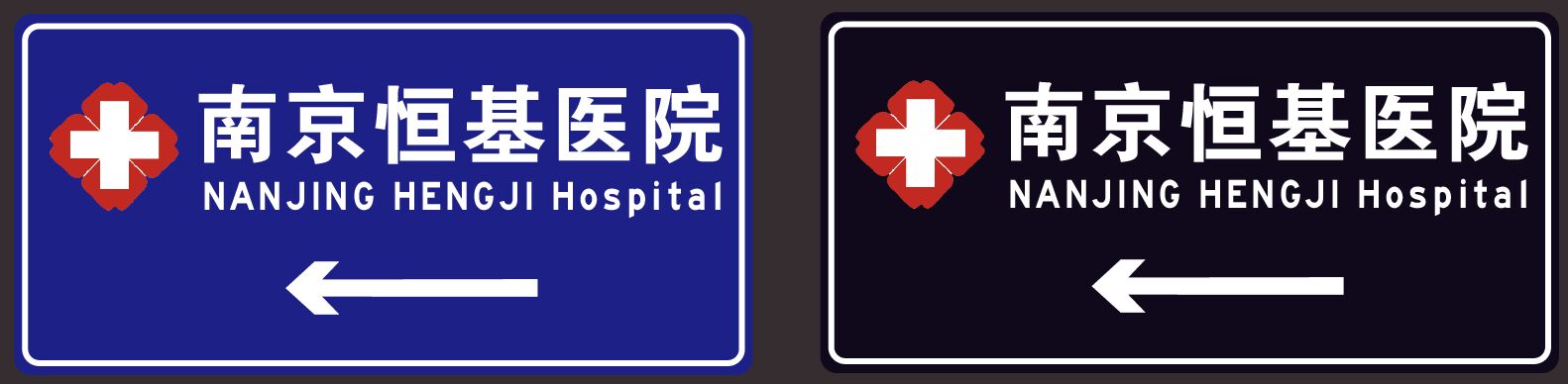 1、指示標(biāo)志。在醫(yī)院周邊的主干道上,根據(jù)實(shí)際條件,可設(shè)置遠(yuǎn)距離預(yù)告標(biāo)志,或?qū)⑨t(yī)院指示信息融入指路標(biāo)志版面;在臨近醫(yī)院入口相交的市政道路上,設(shè)置醫(yī)院指示標(biāo)志??刹捎?a href="http://m.hd3c.com/category/chanpin/zhudongfaguangbiaozhi">主動(dòng)發(fā)光標(biāo)志。(下左圖:白天效果;下右圖:夜晚效果)