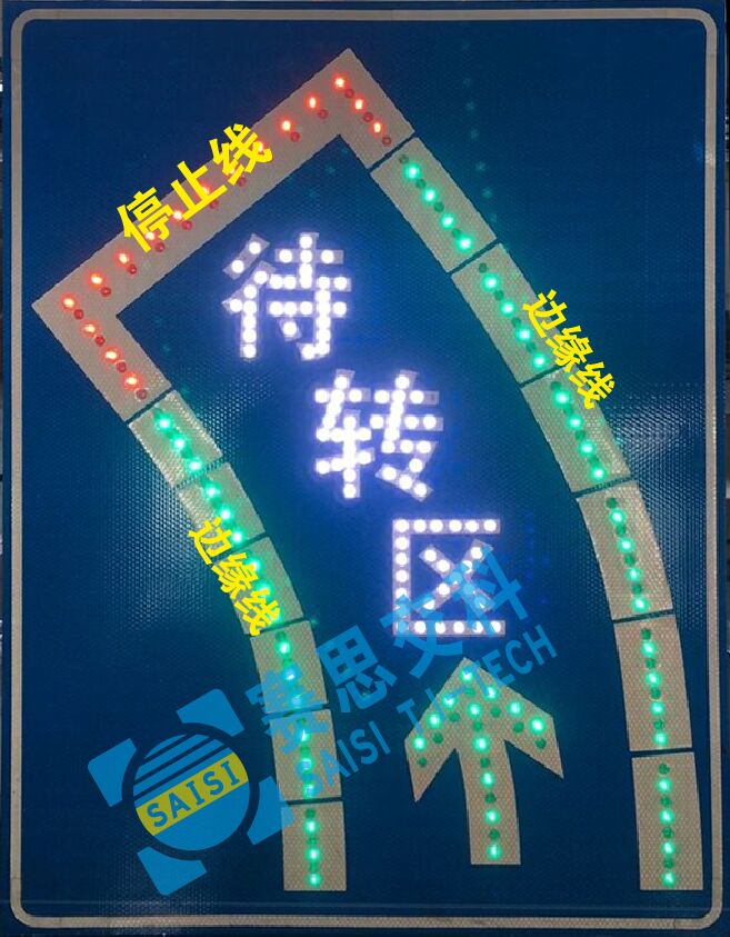 為了提高交叉口整體的通行能力,設(shè)計(jì)師們常常會(huì)采用設(shè)置左轉(zhuǎn)等待區(qū)的處理方式,左轉(zhuǎn)車輛可以在直行綠燈時(shí),提前駛?cè)胱筠D(zhuǎn)等待區(qū),為了形象地引導(dǎo)左轉(zhuǎn)車輛,南京賽思交通信息科技有限公司作為專業(yè)的智能發(fā)光標(biāo)志生產(chǎn)單位,特研發(fā)出本款文字加箭頭型待轉(zhuǎn)區(qū)動(dòng)態(tài)引導(dǎo)發(fā)光標(biāo)志。具體技術(shù)參數(shù)如下:
