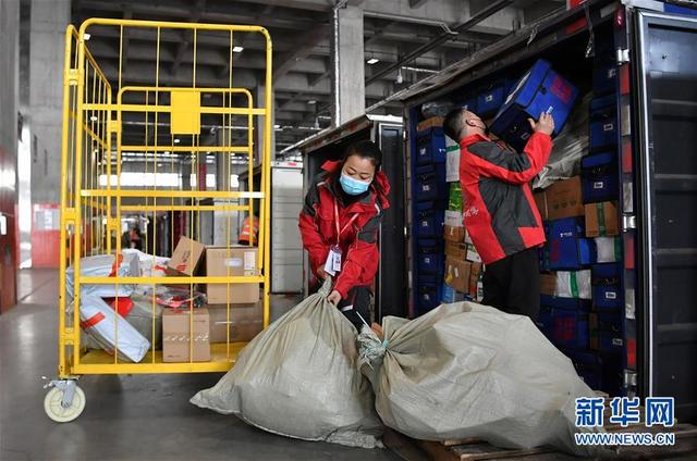 在陜西西安,京東物流西北區(qū)西安傳站車隊貨車司機梁紅娟(左)與同事一起準備將貨物裝車(3月6日攝)。 新華社記者 劉瀟 攝