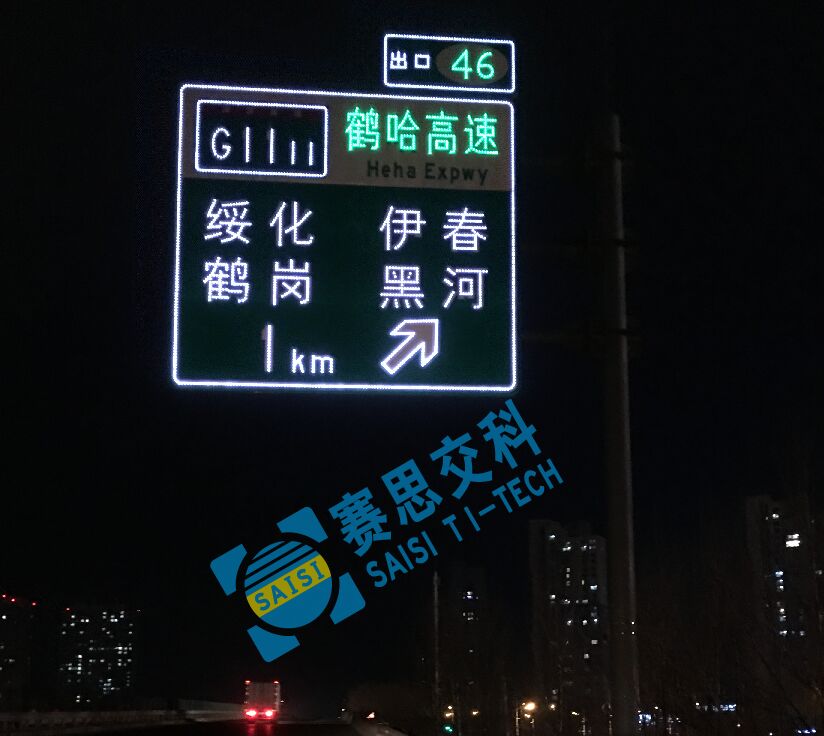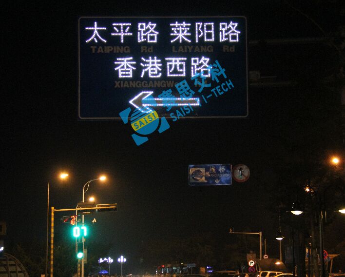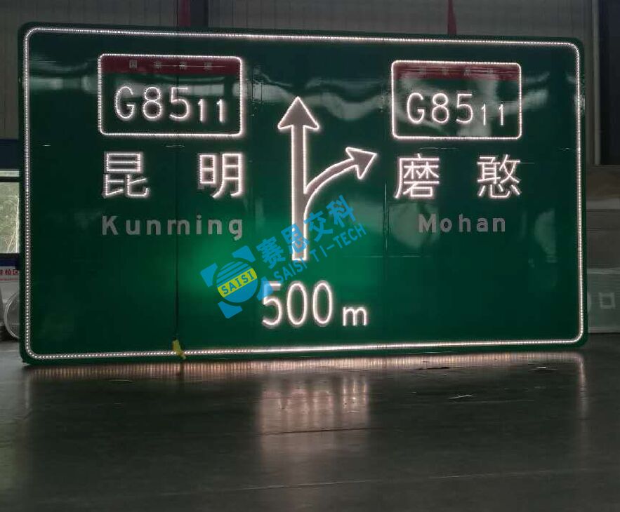 在高速路、快速路及偏遠(yuǎn)的農(nóng)村路,常常因?yàn)闊o法提供供電電源,部分耗電較大的內(nèi)置照明類指路主動(dòng)發(fā)光標(biāo)志無法安裝,本款“大型指路類點(diǎn)陣型主動(dòng)led發(fā)光標(biāo)志”,屬于“led發(fā)光標(biāo)志”范疇,因其耗電相對(duì)較少,可采用太陽能蓄電池供電方式,滿足標(biāo)志發(fā)光電能供應(yīng),常常被運(yùn)用在上述路段、區(qū)域。