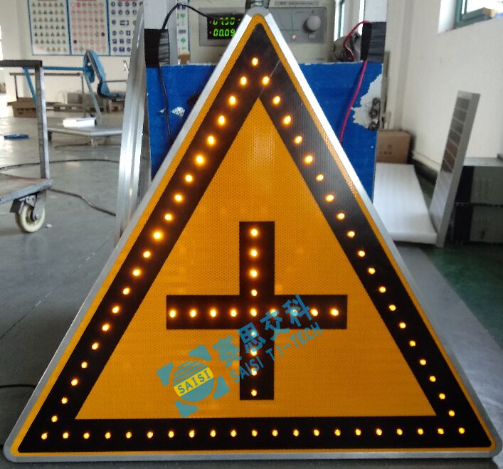 在未設置信號燈的畸形交叉口,常常由于優(yōu)先通行路權(quán)沒有明確,車輛會車時,極易發(fā)生碰撞事故,可以通過設置“停”字、“讓”字、“慢”字等公路發(fā)光標志牌,和必要的路權(quán)分配指引標志(如:“太陽能右下行發(fā)光警示柱”等),明確各方向的優(yōu)先路權(quán),同時公路發(fā)光標志牌具備遠距離的視認性,讓不同方向的交通流能遠距離發(fā)現(xiàn)前方交叉口的路權(quán)分配信息。