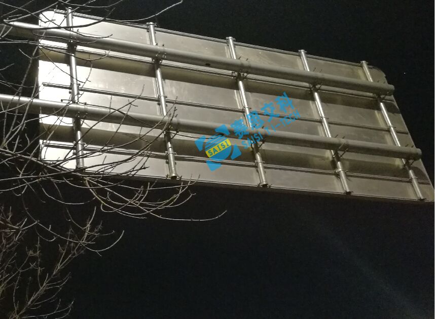 半透發(fā)光標(biāo)志整體重量,較普通標(biāo)志重,通常約25KG/平米,如果僅采用傳統(tǒng)標(biāo)志的滑槽固定結(jié)構(gòu),標(biāo)志的整體重量?jī)H靠背板與抱邊連接處承擔(dān)重力,會(huì)導(dǎo)致標(biāo)志后背板出現(xiàn)凸型拉伸面,長(zhǎng)久下去,若遇上大風(fēng)的橫向風(fēng)壓,極易發(fā)送結(jié)構(gòu)脫落的危險(xiǎn)隱患。我們通常采用外接鍍鋅管轉(zhuǎn)移受力結(jié)構(gòu),將鍍鋅管的一段連接在標(biāo)志的整體承重框架中,一段安裝抱箍、卡箍連接懸臂桿,保證的安裝結(jié)構(gòu)的整體受力穩(wěn)固,能抵御較大的自身重力和橫向風(fēng)壓。