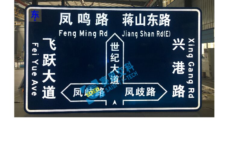 4、指路標(biāo)志 。在道路中,根據(jù)不同道路級(jí)別,設(shè)置于交叉口進(jìn)口方向,通常據(jù)進(jìn)口車道停止線80—120米范圍內(nèi)。