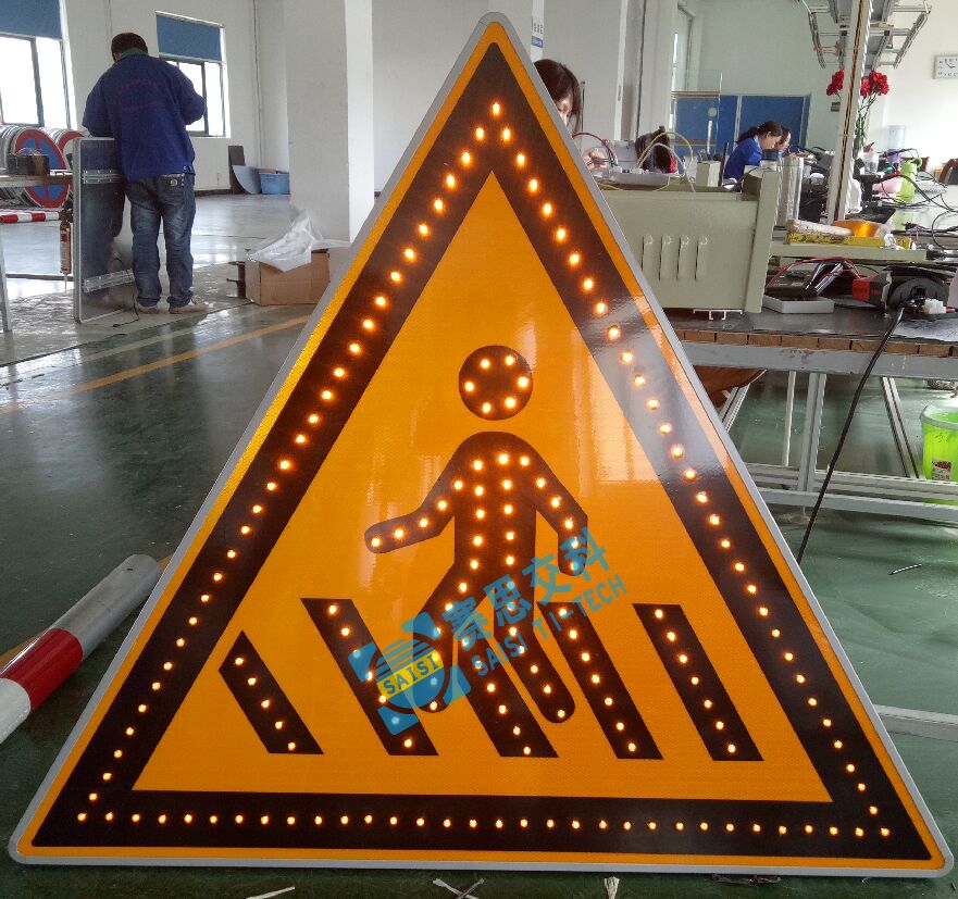 (3)注意行人發(fā)光警告標(biāo)志(輔標(biāo)"有人過(guò)街、注意禮讓")