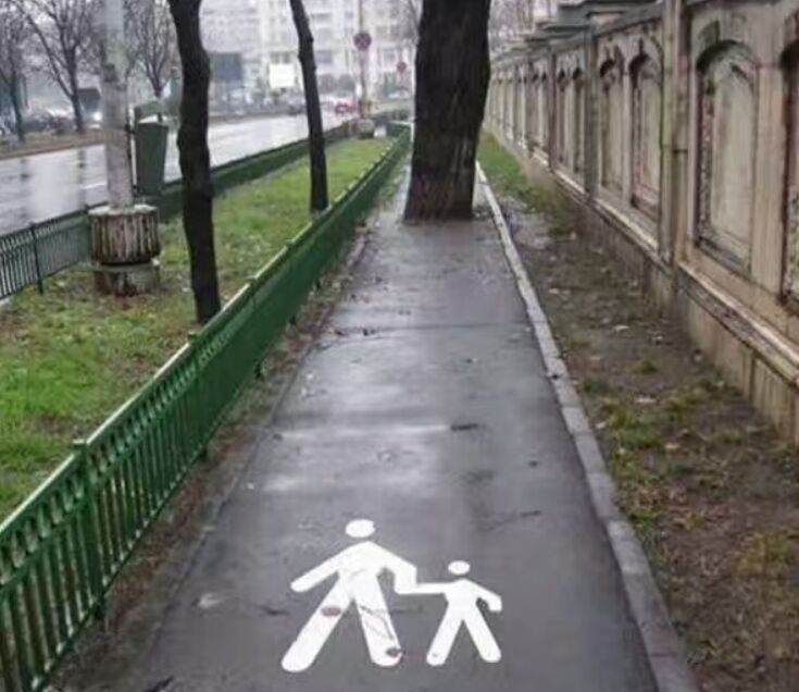 地面標(biāo)線其實(shí)反映了一個(gè)悲壯的事故,——“走,我們一起去撞樹!”,——“不!”,——“別怕,我拉著你!”。老樹很委屈:“當(dāng)我是一棵樹苗的時(shí)候,這里還是一片荒野!我一直就在這里,從未離開!怎么就占了你們?nèi)祟惖穆罚?!?/span>