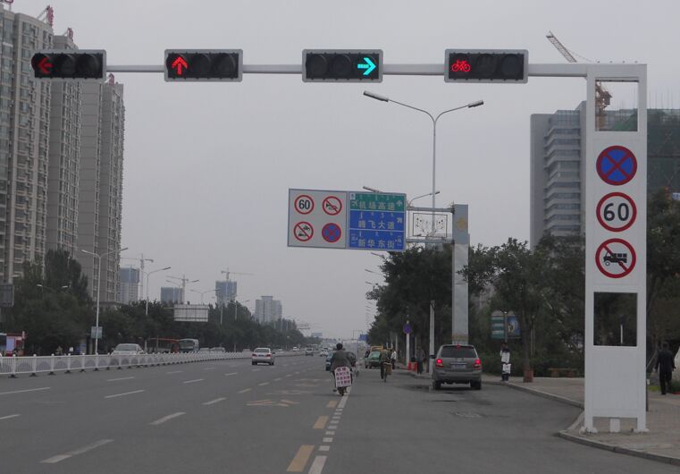 其二,這個(gè)“新版紅綠燈”中,用“新版”兩字定義“紅綠燈”,使用不當(dāng)。目前我國(guó)所規(guī)范的常見紅綠燈,主要包括:機(jī)動(dòng)車信號(hào)燈(俗稱“圓盤燈”)、方向指示信號(hào)燈(俗稱“箭頭燈”)、非機(jī)動(dòng)車信號(hào)燈(俗稱“自行車燈”)、人行橫道信號(hào)燈(俗稱“人行燈”)、車道信號(hào)燈(俗稱“紅叉綠箭頭燈”)、閃光警告信號(hào)燈(俗稱“黃閃燈”)等,在這種所謂的“新版紅綠燈”中,只是采用了一種“左轉(zhuǎn)箭頭燈”+“滿屏燈”和“右轉(zhuǎn)箭頭燈”的組合方式,并可根據(jù)調(diào)控需要,實(shí)時(shí)關(guān)閉左、右箭頭燈,切換成不同類型的紅綠燈組合,其本質(zhì)只是一種可切換的紅綠燈亮燈組合,而不是所謂的“新版紅綠燈”,因?yàn)榧t綠燈的樣式并沒有改變,仍是符合國(guó)標(biāo)《道路交通信號(hào)燈》(GB14887-2011)的技術(shù)要求,所以準(zhǔn)確的叫法應(yīng)該是:“新版紅綠燈亮燈組合”。
