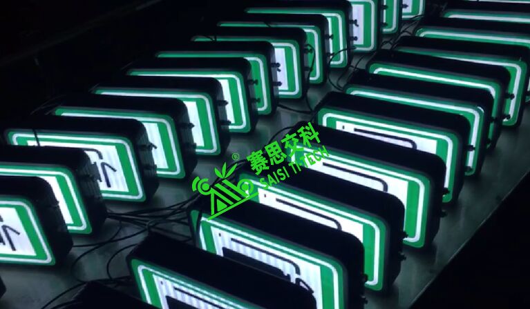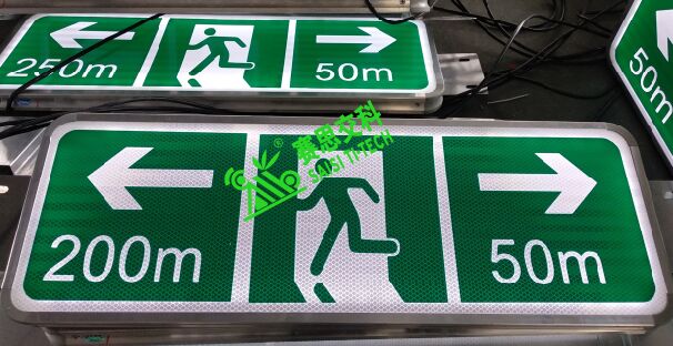 隧道雙面全透電光標志,面板采用專用透光材質(zhì);背板采用鋁制板材;抱邊結構采用專用的模具成型鋁制結構;面板圖案文字部分,主要分兩種:(1)國標IV類反光膜;(2)UV專用圖案打?。ú环垂猓F浒惭b通常采用L型支架架構,側(cè)裝于隧道內(nèi)壁。光源采用專用內(nèi)置照明超亮燈珠,內(nèi)部投射于標志表面,形成發(fā)光效果。