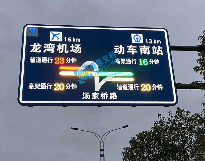其一,供駕駛?cè)嗽谕颈孀R(shí)。駕駛?cè)碎_車行駛在路上,需要“眼觀六路”,去捕捉路側(cè)的交通安全設(shè)施,及時(shí)、準(zhǔn)確、盡可能地去獲知道路信息、交通管制信息、危險(xiǎn)因素信息、通行權(quán)信息等,而交通標(biāo)志就是其中最重要的交通語言信息載體之一。交通標(biāo)志除了提前設(shè)置,為駕駛?cè)颂峁┏湓5恼J(rèn)讀、辨識(shí)時(shí)間,還可以通過采用主動(dòng)發(fā)光工藝,制作成“自發(fā)光標(biāo)志”版面,來提升遠(yuǎn)距離視認(rèn)性,醒目、遠(yuǎn)距離地向在途駕駛?cè)藗鬟f交通信息,讓司機(jī)們能及時(shí)修正駕駛操作,合規(guī)、準(zhǔn)確、高效地達(dá)成駕駛目標(biāo)。