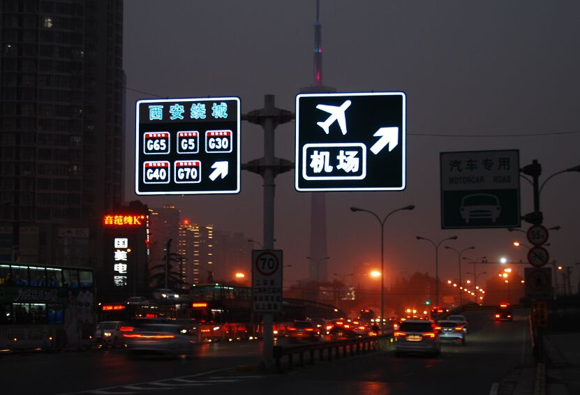1、指示、指路類標(biāo)志(深色底膜,白色字符膜,因白色反光膜的透光率強(qiáng),其它顏色透光率弱,不適合采用半透工藝,特別式黑色字膜不透光);