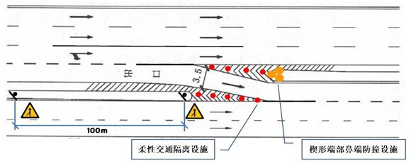 (1)對于路段出口即主輔路出口處,應通過路緣石或柔性交通隔離設施將主輔路明顯區(qū)別出,防止輔路車輛通過出口進入主路。
