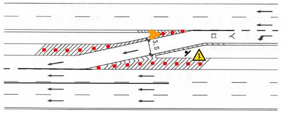 (3)應通過施劃一定長度(50-100m)車行道同向分隔白色實線,實施出口段影響范圍內的車道管控即盡可能降低主線最外側行車道與減速車道間、主線最外側行車道與相鄰內側行車道間、輔路車流與出口匯入車流間的交通沖突影響及其安全風險。